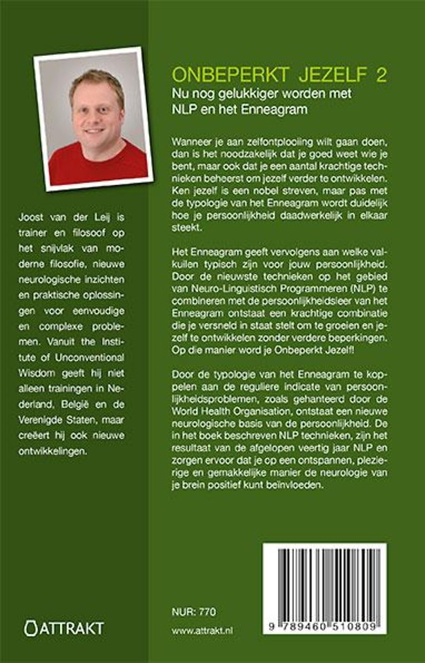 Het Enneagram geeft vervolgens aan welke valkuilen typisch zijn voor jouw persoonlijkheid. Door de nieuwste technieken op het gebied van Neuro-Linguistisch Programmeren (NLP) te combineren met de persoonlijkheidsleer van het Enneagram ontstaat een krachtige combinatie die je versneld in staat stelt om te groeien en jezelf te ontwikkelen zonder verdere beperkingen. Op die manier word je Onbeperkt Jezelf!