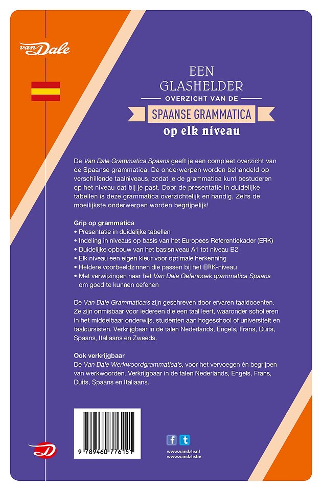 De Van Dale Grammatica Spaans geeft je een compleet overzicht van de Spaanse grammatica. De onderwerpen worden behandeld op verschillende taalniveaus, zodat je de grammatica kunt bestuderen op het niveau dat bij je past. Door de presentatie in duidelijke tabellen is deze grammatica overzichtelijk en handig. Zelfs de moeilijkste onderwerpen worden begrijpelijk!