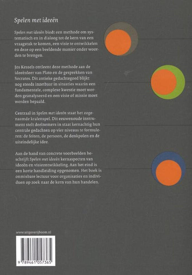 In ‘Spelen met ideeën’ wordt het filosofisch gesprek toegelicht aan de hand van het zogenaamde kralenspel. Kessels gebruikt dit eeuwenoude spel om ideeën te genereren aan de hand van gesprekken. Een heerlijk boek om te lezen, waarin de lezer de nodige uitstapjes krijgt naar de oudheid.