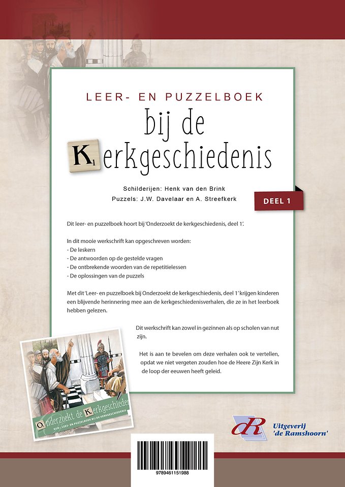 Met dit ‘Leer- en puzzelboek bij Onderzoekt de kerkgeschiedenis, deel 1’ krijgen kinderen een blijvende herinnering mee aan de kerkgeschiedenisverhalen, die ze in het leerboek hebben gelezen.