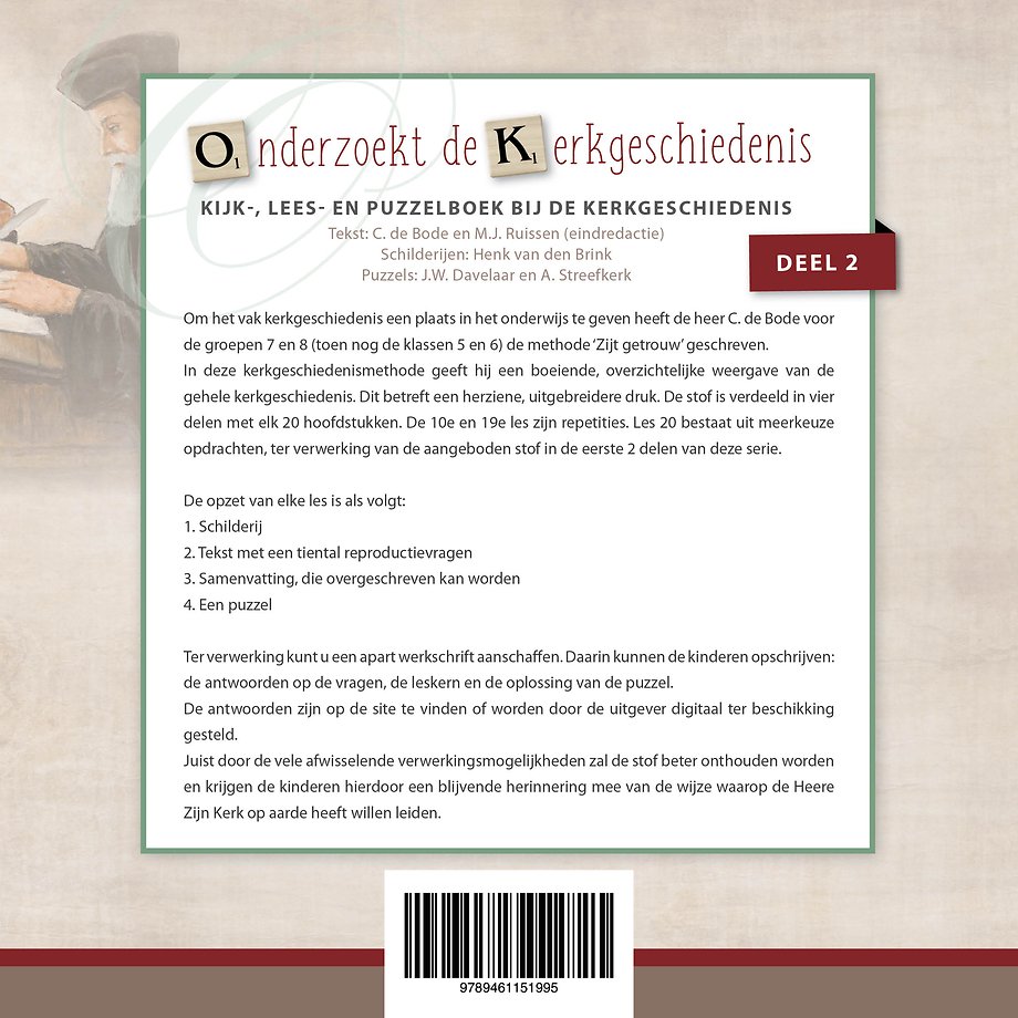 Wanneer u dit leer- en puzzelboek van de kerkgeschiedenis voor meerdere kinderen wilt benutten, kunt u een apart werkschrift aanschaffen. Daarin kunnen de kinderen opschrijven: de antwoorden op de vragen, de leskern en de oplossing van de puzzel. Bovendien houdt u dit boek mooi en kan het voor hergebruik benut worden. Bij klassikaal gebruik levert dat een hele besparing op; u hoeft niet voor elk kind een nieuw boek aan te schaffen. Zo zorgt u ervoor dat het kind een blijvende herinnering aan de verhalen over de kerkgeschiedenis meekrijgt. Kortom: dit lees- en puzzelboek is een waardevolle aanwinst voor alle christelijke scholen en gezinnen.
