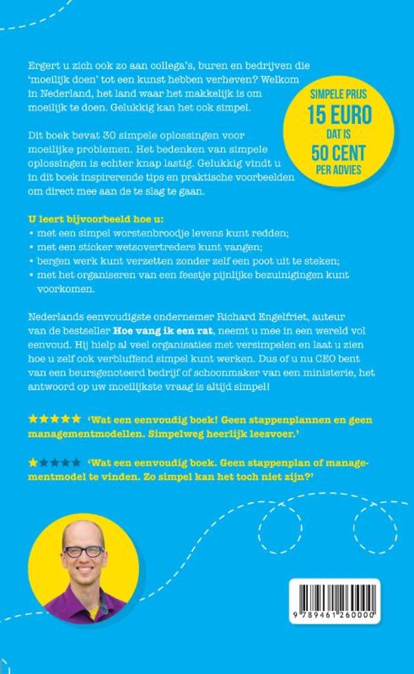 Meer over Richard EngelfrietErgert u zich ook zo aan collega's, buren en bedrijven die 'moeilijk doen' tot een kunst hebben verheven? Welkom in Nederland, het land waar het makkelijk is om moeilijk te doen. Gelukkig kan het ook simpel.