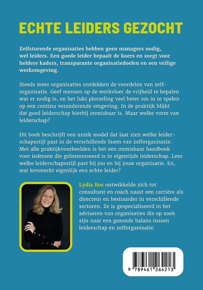 Dit boek beschrijft een uniek model dat laat zien welke leiderschapsstijl past in de verschillende fasen van zelforganisatie. Met alle praktijkvoorbeelden is het een onmisbaar handboek voor iedereen die geïnteresseerd is in eigentijds leiderschap. Lees welke leiderschapsstijl past bij jou en bij jouw organisatie. En, wat kenmerkt eigenlijk een echte leider?