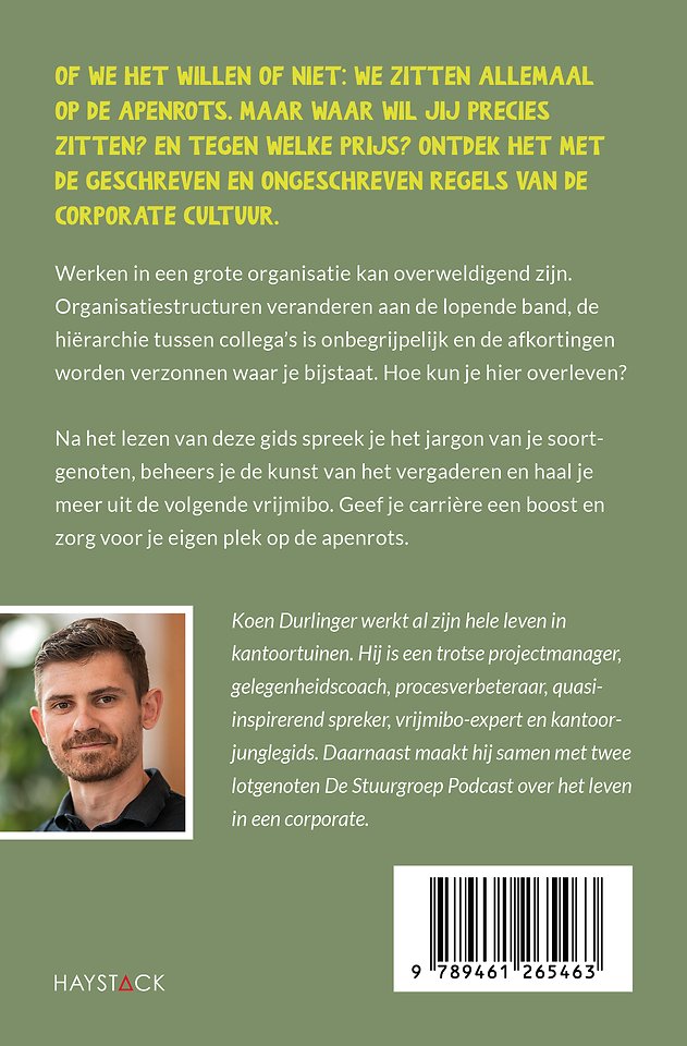 Of we het willen of niet: we zitten allemaal op de apenrots. Maar waar wil jij precies zitten? En tegen welke prijs? Ontdek het met de geschreven en ongeschreven regels van de corporate cultuur.
