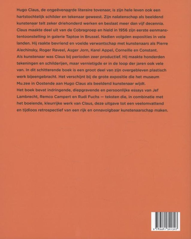 Hugo Claus, de ongevenaarde literaire tovenaar, is zijn hele leven ook een hartstochtelijk schilder en tekenaar geweest. Zijn nalatenschap als beeldend kunstenaar telt zeker driehond werken en beslaat meer dan vijf decennia. Claus maakte deel uit van de Cobragroep en hield in 1956 zijn eerste eenmanstentoonstelling in gallerie Taptoe in Brussel. Nadien volgden exposities in vele landen. Hij raakte bevriend en voelde verwantschap met kunstenaars als Pietrre Alechinsky, Roger Raveel, Asger Jorn, Karel Appel, Corneille en Constant. Als kunstenaar was Claus bij perioden zeer productief. Hij maakte honderden tekeningen en schilderijen, maar vernietigde er in de loop der jaren ook vele van. In dit schitterende boek is een groot deel van zijn overgebleven plastisch werk bijeengebracht. Het verschijnt bij de grote expositie die het museum Mu.zee in Oostende aan Hugo Claus als beeldend kunstenaar wijdt. Het boek bevat indringende, diepgravende en persoonlijke essays van Jef Lambrecht, Remco Campert en Rudi Fuchs - teksten die, in combinatie met het boeiende, kleurrijke werk van Claus, deze uitgave tot een veelomvattend en tijdloos retrospectief van een rijk en onnavolgbaar kunstenaarschap maken.