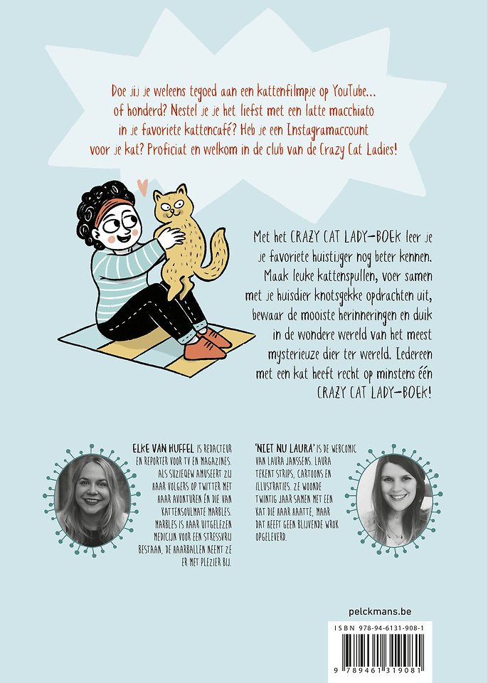 Doe jij je weleens tegoed aan een kattenfilmpje op YouTube – of honderd? Nestel je je het liefst met een latte macchiato in je favoriete kattencafé? Heb je… een Instagramaccount voor je kat? Proficiat en welkom in de club van de Crazy Cat Ladies! Met het Crazy Cat Lady-boek leer je je favoriete huistijger nog beter kennen. Maak leuke kattenspullen, voer samen met je huisdier knotsgekke opdrachten uit, bewaar de mooiste herinneringen en duik in de wondere wereld van het meest mysterieuze dier ter wereld. Iedereen met een kat heeft recht op minstens één Crazy Cat Lady-boek!