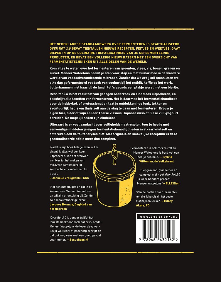 Hét Nederlandse standaardwerk over fermenteren is geactualiseerd. 'Over Rot 2.0' bevat tientallen nieuwe recepten, feitjes en weetjes, gaat dieper in op de culinaire toepasbaarheid van je gefermenteerde producten, en bevat een volledig nieuw katern met een overzicht van fermentatietechnieken uit alle delen van de wereld. Met maar liefst 400 pagina's bevat het 25% meer informatie!