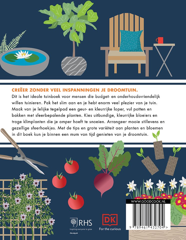 De keuze voor slimme planten (van uitbundige kleurrijke bloeiers tot trage klimplanten die in de toekomst weinig snoeiwerk geven), het tuinieren in potten en het arrangeren van mooie stillevens of de creatie van sfeerhoekjes zonder hoge aanlegkosten zal iedereen tot de verbeelding spreken. Met een grote variëteit aan planten en bloemen die dit boek geeft, en die niet duur in aanschaf zijn, kun je binnen een mum van tijd genieten van je droomtuin.