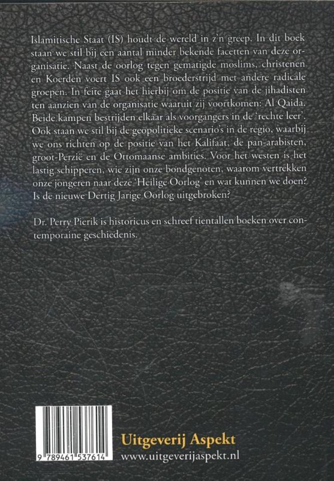 Islamitische Staat (IS) houdt de wereld in z'n greep. In dit boek staan we stil bij een aantal minder bekende facetten van deze organisatie. Naast de oorlog tegen gematigde moslims, christenen en Koerden voert IS ook een broederstrijd met andere radicale groepen. In feite gaat het hierbij om de positie van de jihadisten ten aanzien van de organisatie waaruit zij voortkomen: Al Qaida. Beide kampen bestrijden elkaar als voorgangers in de 'rechte leer'. Ook staan we stil bij de geopolitieke scenario's in de regio, waarbij we ons richten op de positie van het Kalifaat, de pan-arabisten, groot-Perzië en de Ottomaanse ambities. Voor het westen is het lastig schipperen, wie zijn onze bondgenoten, waarom vertrekken onze jongeren naar deze 'Heilige Oorlog' en wat kunnen we doen? Is de nieuwe Dertig Jarige Oorlog uitgebroken?