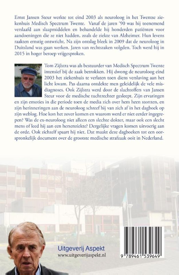 Tom Zijlstra was als bestuurder van Medisch Spectrum Twente intensief bij de zaak betrokken. Hij dwong de neuroloog eind 2003 het ziekenhuis te verlaten toen diens verslaving aan het licht kwam. Pas daarna ontdekte men geleidelijk de vele misdiagnoses. Ook Zijlstra werd door de slachtoffers van Jansen Steur voor de medische tuchtrechter gesleept. Zijn ervaringen en zijn emoties in die periode toen de media zich over hem heen stortten, en zijn herinneringen aan de neuroloog schreef hij van zich af in het dagboek op zijn weblog. Hoe kon het zover komen en waarom werd er niet eerder ingegrepen? Was de ex-neuroloog niet alleen een slechte dokter, maar ook een slecht mens of leed hij aan een hersenziekte? Dergelijke vragen komen uitvoerig aan de orde. Ook zichzelf spaart hij niet. Dat maakt deze dagboeken tot een oorspronkelijk document over de grootste medische strafzaak ooit in Nederland.
