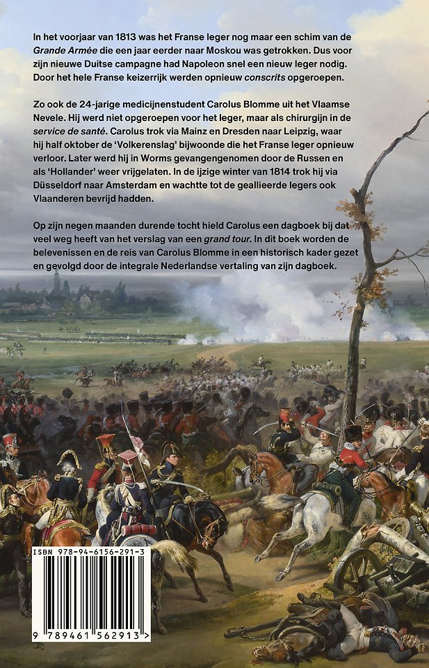 Zo ook de 24-jarige medicijnenstudent Carolus Blomme uit het Vlaamse Nevele. Hij werd niet opgeroepen voor het leger, maar als chirurgijn in de service de santé. Carolus trok via Mainz en Dresden naar Leipzig, waar hij half oktober de ‘Volkerenslag’ bijwoonde en die het Franse leger opnieuw verloor. Later werd hij in Worms gevangengenomen door de Russen en als ‘Hollander’ weer vrijgelaten. In de ijzige winter van 1814 trok hij via Düsseldorf naar Amsterdam en wachtte tot de geallieerde legers ook Vlaanderen bevrijd hadden.