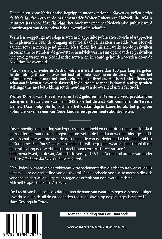 Dat deed Van Hoëvell met veel verve. Hij verzamelde de getuigenissen en verhalen en stelde een ook nu nog uiterst leesbare bundel samen voor een groot publiek. Diverse genres lopen door elkaar heen: reisbeschrijving, dagboek, reportage, verhaal, essay en pamflet. Het resultaat is een uniek document dat een indringend beeld geeft van het omgaan met de 40.000 slaven in Suriname. Nu de discussie over de koloniale geschiedenis steeds heftiger ge­voerd wordt, is een heruitgave van dit monumentale werk des te noodzakelijker.