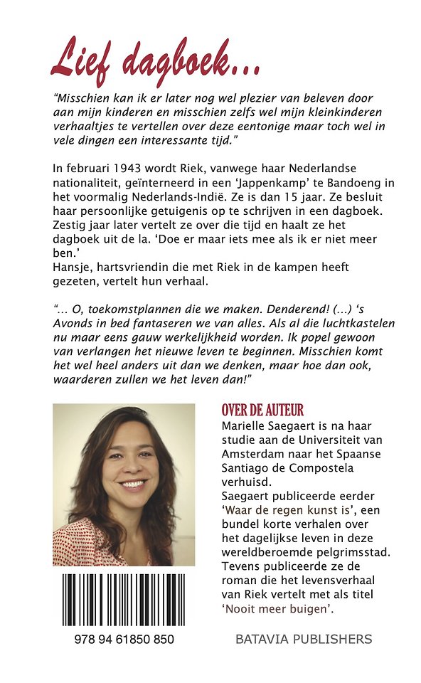 In februari 1943 wordt Riek, vanwege haar Nederlandse nationaliteit, geïnterneerd in een 'Jappenkamp' te Bandoeng in het voormalig Nederlands-Indië. Ze is dan 15 jaar. Ze besluit haar persoonlijke getuigenis op te schrijven in een dagboek.