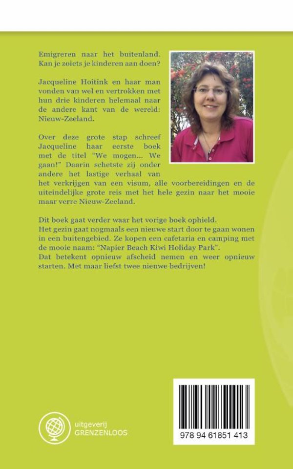 Over deze grote stap schreef Jacqueline haar eerste boek met de titel "We mogen... We gaan!" Daarin schetste zij onder andere het lastige verhaal van het verkrijgen van een visum, alle voorbereidingen en de uiteindelijke grote reis met het hele gezin naar het mooie maar verre Nieuw-Zeeland.