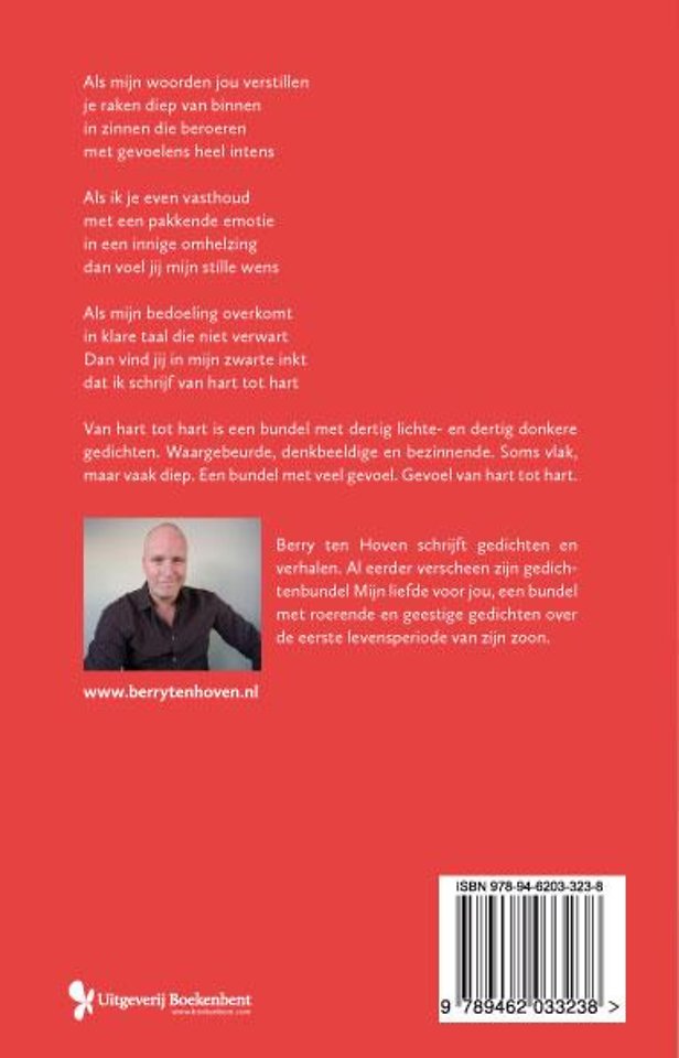 Van hart tot hart is een bundel met dertig lichte- en dertig donkere gedichten. Waargebeurde, denkbeeldige en bezinnende. Soms vlak, maar vaak diep. Een bundel met veel gevoel. Gevoel van hart tot hart.