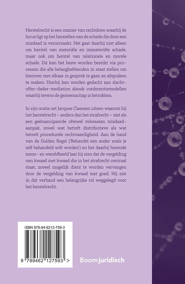 In zijn oratie zet Jacques Claessen uiteen waarom hij het herstelrecht – anders dan het strafrecht – ziet als een geëmancipeerde oftewel volwassen misdaadaanpak,