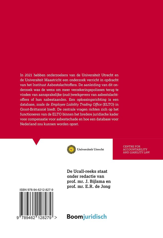 asbestschade asbestslachtoffers schadeverhaal verzekeringspolissen database aansprakelijkheidsrecht databases elto rechtsvergelijking instituut asbestslachtoffers compensatiesystemen beroepsziekten compensatie werkgeversaansprakelijkheid groot-brittannië nederland aansprakelijkheidsverzekering juridisch onderzoek technische haalbaarheid onderzoek verzekeringen arbeidsrecht en sociale zekerheid informatiesystemen rechtswetenschap wetgeving schadevergoeding bemiddeling ict procedurerecht gegevensbeheer
