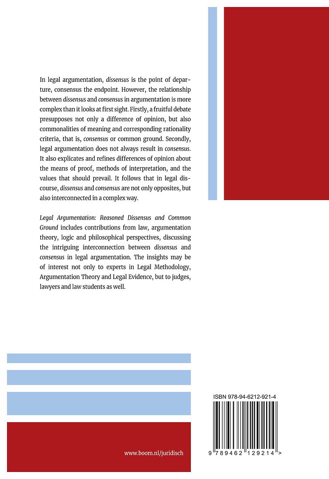 Legal Argumentation: Reasoned Dissensus and Common Ground includes contributions from law, argumentation theory, logic and philosophical perspectives, discussing the intriguing interconnection between dissensus and consensus in legal argumentation. The insights may be of interest not only to experts in Legal Methodology, Argumentation Theory and Legal Evidence, but to judges, lawyers and law students as well.