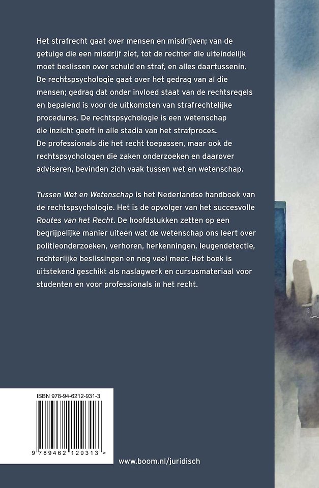 Het strafrecht gaat over mensen en misdrijven; van de getuige die een misdrijf ziet, tot de rechter die uiteindelijk moet beslissen over schuld en straf, en alles daartussenin. De rechtspsychologie gaat over het gedrag van al die mensen; gedrag dat onder invloed staat van de rechtsregels en bepalend is voor de uitkomsten van strafrechtelijke procedures. De rechtspsychologie is een wetenschap die inzicht geeft in alle stadia van het strafproces. De professionals die het recht toepassen, maar ook de rechtspsychologen die zaken onderzoeken en daarover adviseren, bevinden zich vaak tussen wet en wetenschap.