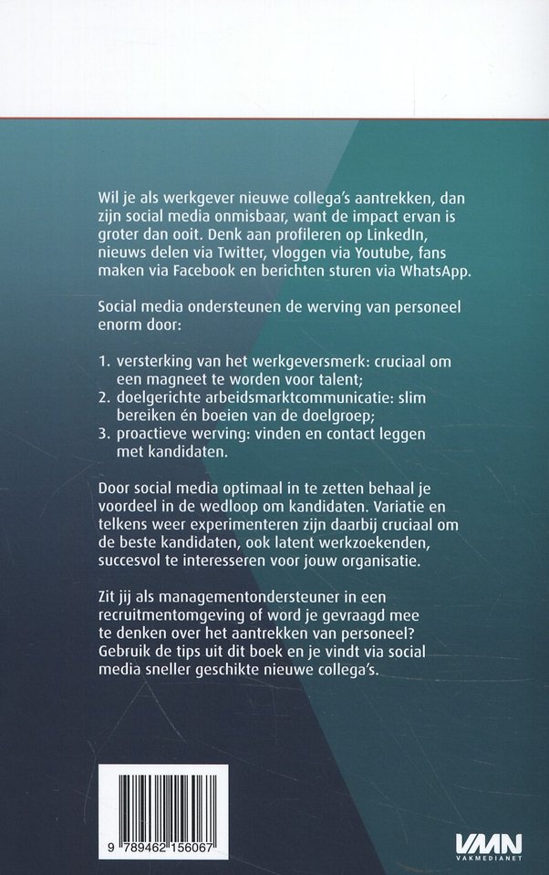 Zit jij als managementondersteuner in een recruitment omgeving of word je gevraagd mee te denken over het aantrekken van personeel? Gebruik de tips uit dit boek en je vindt via social media sneller geschikte nieuwe collega’s