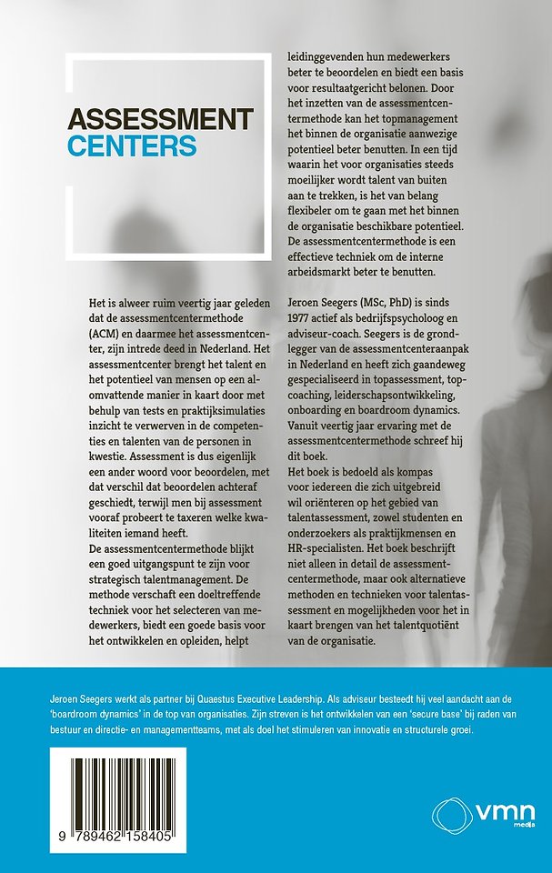 Meer over Jeroen SeegersHet is alweer ruim veertig jaar geleden dat de assessmentcentermethode (ACM) en daarmee het assessmentcenter, zijn intrede deed in Nederland. Het assessmentcenter brengt het talent en het potentieel van mensen op een alomvattende manier in kaart door met behulp van tests en praktijksimulaties inzicht te verwerven in de competenties en talenten van de personen in kwestie. Assessment is dus eigenlijk een ander woord voor beoordelen, met dat verschil dat beoordelen achteraf geschiedt, terwijl men bij assessment vooraf probeert te taxeren welke kwaliteiten iemand heeft.