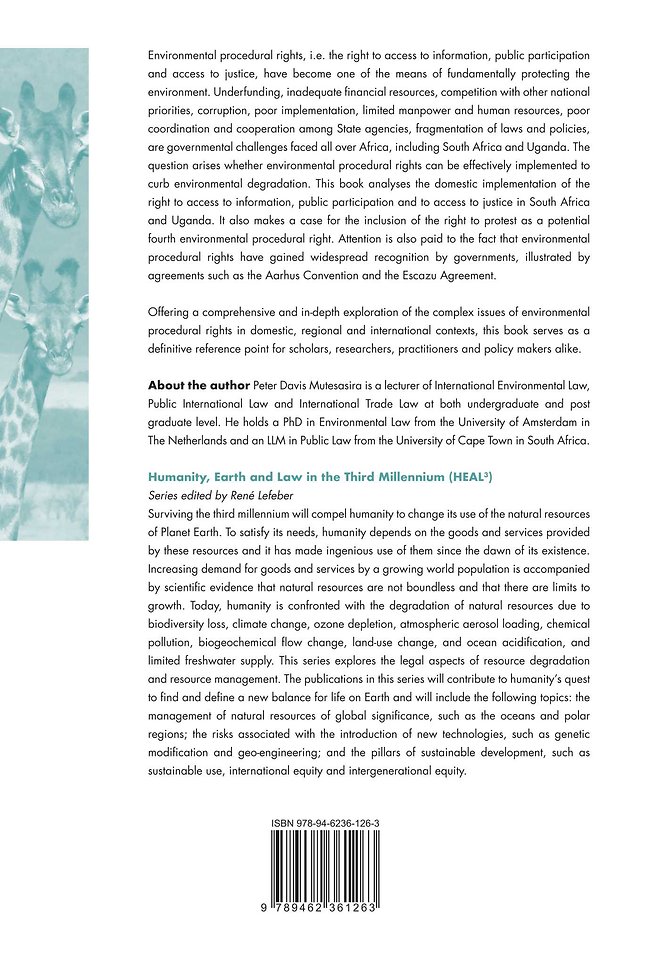 This book analyses the domestic implementation of the right to access to information, public participation and to access to justice in South Africa and Uganda. It also makes a case for the inclusion of the right to protest as a potential fourth environmental procedural right. Attention is also paid to the fact that environmental procedural rights have gained widespread recognition by governments, illustrated by agreements such as the Aarhus Convention and the Escazu Agreement. Offering a comprehensive and in-depth exploration of the complex issues of environmental procedural rights in domestic, regional and international contexts, this book serves as a definitive reference point for scholars, researchers, practitioners and policy makers alike.