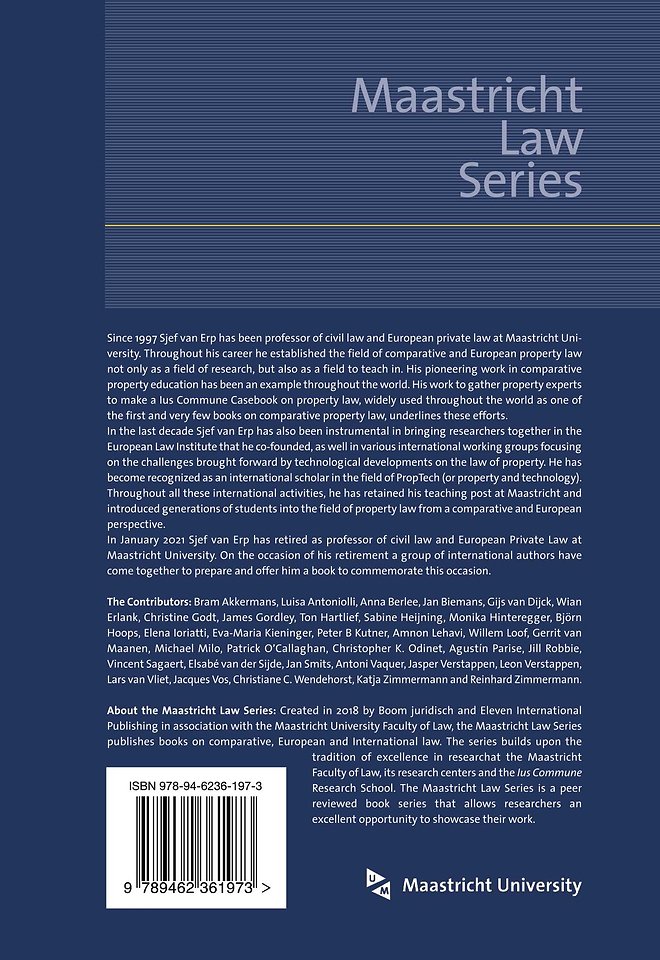 In January 2021 Sjef van Erp has retired as professor of civil law and European Private Law at Maastricht University. On the occasion of his retirement a group of international authors have come together to prepare and offer him a book to commemorate this occasion.