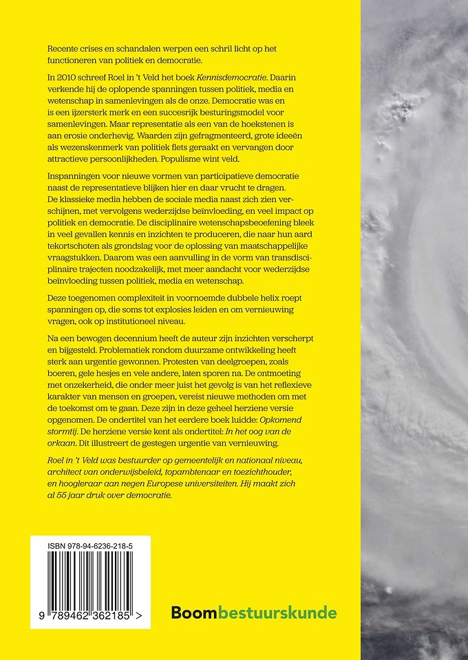 In 2010 schreef Roel in ’t Veld het boek Kennisdemocratie. Daarin verkende hij de oplopende spanningen tussen politiek, media en wetenschap in samenlevingen als de onze. Democratie was en is een ijzersterk merk en een succesrijk besturingsmodel voor samenlevingen. Maar representatie als een van de hoekstenen is aan erosie onderhevig. Waarden zijn gefragmenteerd, grote ideeën als wezenskenmerk van politiek flets geraakt en vervangen door attractieve persoonlijkheden. Populisme wint veld.