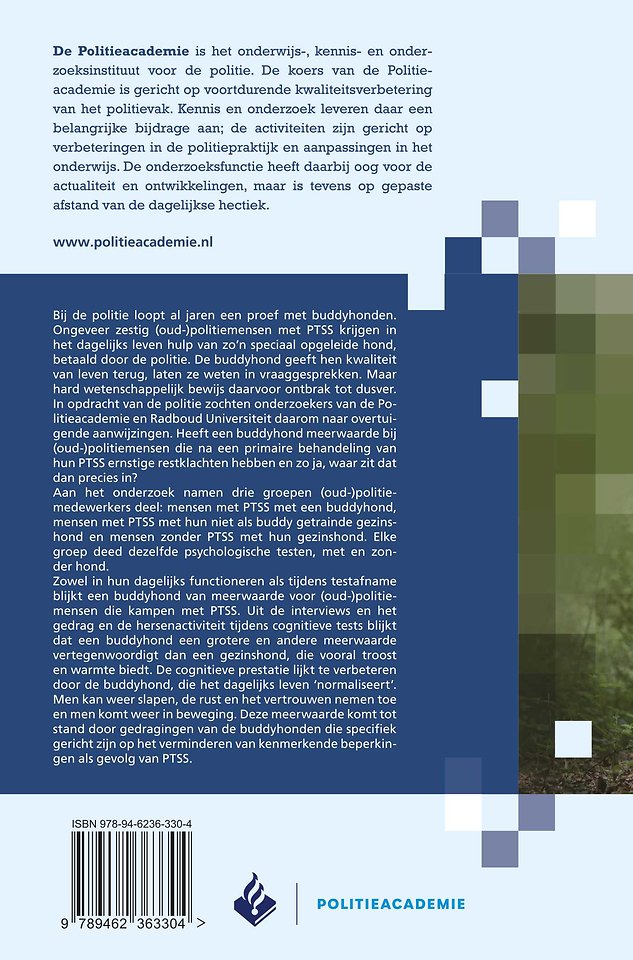 Bij de politie loopt al jaren een proef met buddyhonden. Ongeveer zestig (oud-)politiemensen met PTSS krijgen in het dagelijks leven hulp van zo’n speciaal opgeleide hond, betaald door de politie. De buddyhond geeft hen kwaliteit van leven terug, laten ze weten in vraaggesprekken. Maar hard wetenschappelijk bewijs daarvoor ontbrak tot dusver. In opdracht van de politie zochten onderzoekers van de Politieacademie en Radboud Universiteit daarom naar overtuigende aanwijzingen. Heeft een buddyhond meerwaarde bij (oud-)politiemensen die na een primaire behandeling van hun PTSS ernstige restklachten hebben en zo ja, waar zit dat dan precies in?