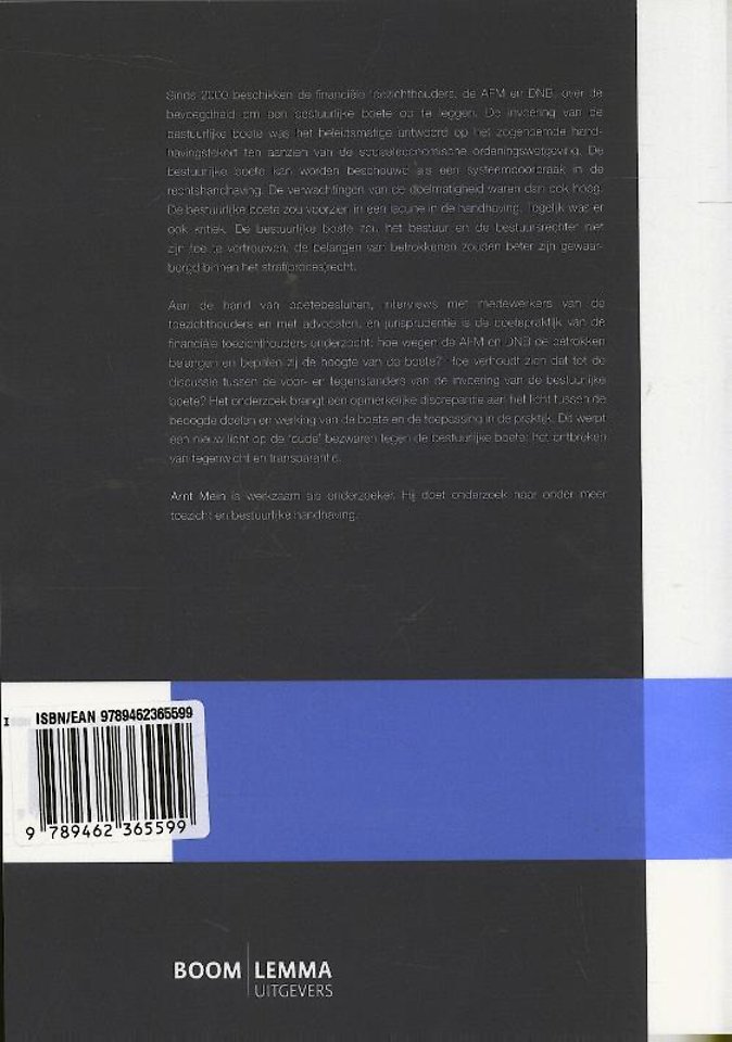 Aan de hand van boetebesluiten, interviews met medewerkers van de toezichthouders en met advocaten, en jurisprudentie is de boetepraktijk van de financiële toezichthouders onderzocht: hoe wegen de AFM en DNB de betrokken belangen en bepalen zij de hoogte van de boete? Hoe verhoudt zich dat tot de discussie tussen de voor- en tegenstanders van de invoering van de bestuurlijke boete? Het onderzoek brengt een opmerkelijke discrepantie aan het licht tussen de beoogde doelen en werking van de boete en de toepassing in de praktijk. Dit werpt een nieuw licht op de ‘oude’ bezwaren tegen de bestuurlijke boete: het ontbreken van tegenwicht en transparantie.