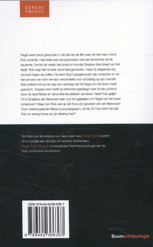 Rob ontkent tot op de dag van vandaag dat hij Regie om het leven heeft gebracht. Volgens hem heeft zij zelfmoord gepleegd toen hij die ochtend door de stad fietste en verschillende plekken aandeed. Heeft Rob gelijk? Of is hij tijdens zijn fietsroute naar huis teruggegaan om Regie van het leven te beroven? Maar kon Rob wel op tijd thuis zijn geweest van zijn fietsroute? Door medicijngebruik fietste hij erg langzaam, zei hij. En hoe komt het dat Rob zo weinig bloed op zijn kleding had?