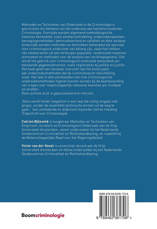 criminologie onderzoeksmethoden criminaliteit onderzoek methodologie steekproeftrekking betrouwbaarheid data-analyse validiteit victimologie slachtofferstudies onderzoeksopzetten evaluatieonderzoek bevragingsmethoden kwalitatief onderzoek kwantitatief onderzoek gegevensbronnen experimenteel onderzoek ethiek causaliteit statistiek wetgeving strafrecht privacy politieregistraties onderzoeksethiek longitudinaal onderzoek justitie cross-sectioneel onderzoek