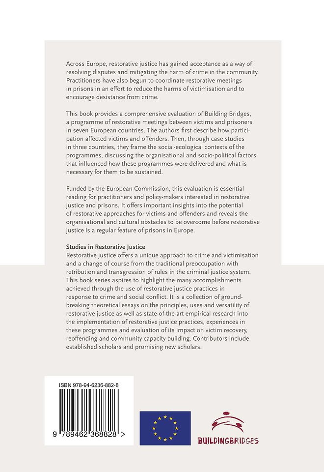 This is the first volume in our new Studies in Restorative Justice book series. The book is based upon on an action research project supported by the Criminal Justice Programme of the European Union. The project developed a new restorative justice programme, called Building Bridges, for use in prisons across Europe.