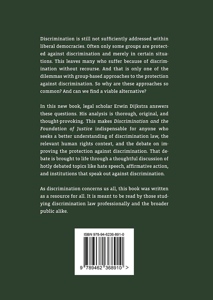 In this new book, legal scholar Erwin Dijkstra answers these questions. His analysis is thorough, original, and thought-provoking. This makes Discrimination and the Foundation of Justice indispensable for anyone who seeks a better understanding of discrimination law, the relevant human rights context, and the debate on improving the protection against discrimination. That debate is brought to life through a thoughtful discussion of hotly debated topics like hate speech, affirmative action, and institutions that speak out against discrimination. As discrimination concerns us all, this book was written as a resource for all. It is meant to be read by those studying discrimination law professionally and the broader public alike.