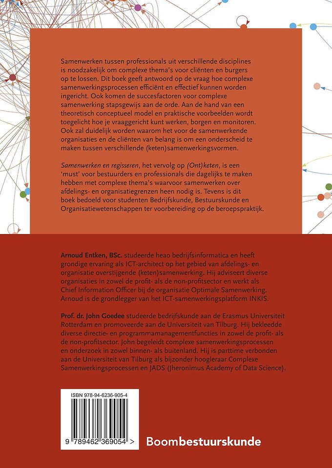Samenwerken tussen professionals uit verschillende disciplines is noodzakelijk om complexe thema’s voor cliënten en burgers op te lossen. Dit boek geeft antwoord op de vraag hoe complexe samenwerkingsprocessen efficiënt en effectief kunnen worden ingericht. Ook komen de succesfactoren voor complexe samenwerking stapsgewijs aan de orde. Aan de hand van een theoretisch conceptueel model en praktische voorbeelden wordt toegelicht hoe je vraaggericht kunt werken, borgen en monitoren. Ook zal duidelijk worden waarom het voor de samenwerkende organisaties en de cliënten van belang is om een onderscheid te maken tussen verschillende (keten) samenwerkingsvormen.