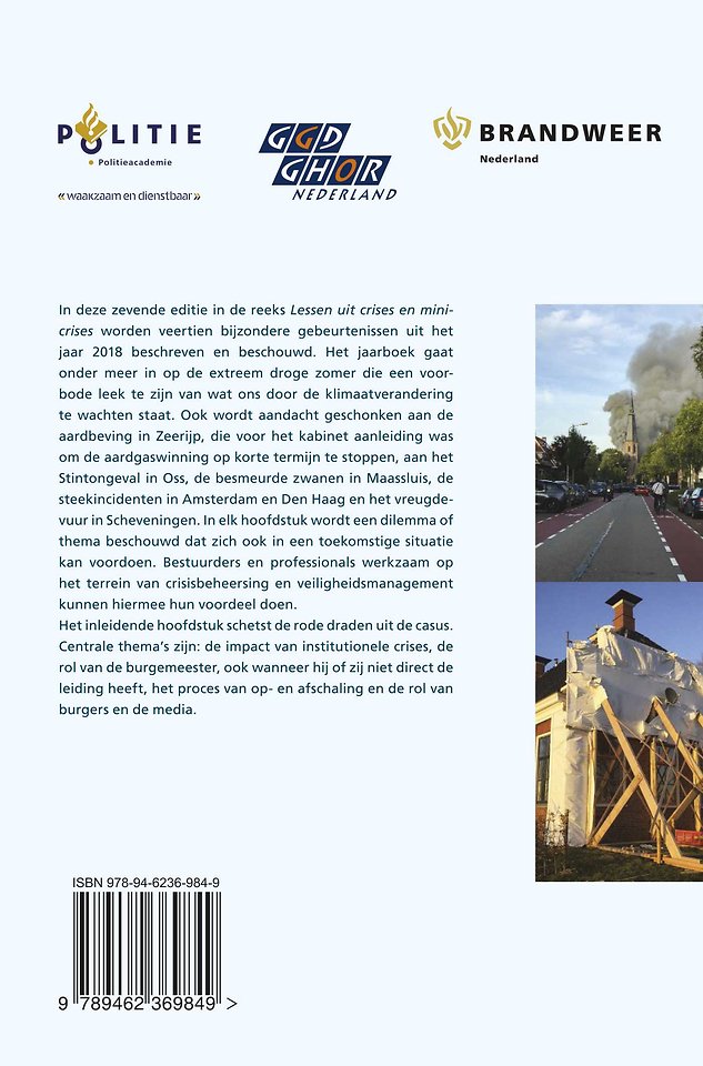In deze zevende editie in de reeks Lessen uit crises en mini-crises worden veertien bijzondere gebeurtenissen uit het jaar 2018 beschreven en beschouwd. Het jaarboek gaat onder meer in op de extreem droge zomer die een voorbode leek te zijn van wat ons door de klimaatverandering te wachten staat. Ook wordt aandacht geschonken aan de aardbeving in Zeerijp, die voor het kabinet aanleiding was om de aardgaswinning op korte termijn te stoppen, aan het Stintongeval in Oss, de besmeurde zwanen in Maassluis, de aanslagen in Amsterdam en Den Haag en het vreugdevuur in Scheveningen.