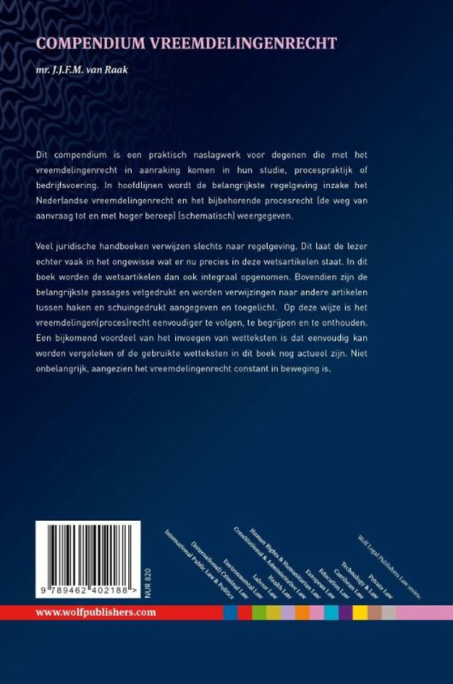 Dit compendium is een praktisch naslagwerk voor degenen die met het vreemdelingenrecht in aanraking komen in hun studie, procespraktijk of bedrijfsvoering. In hoofdlijnen wordt de belangrijkste regelgeving inzake het Nederlandse vreemdelingenrecht en het bijbehorende procesrecht (de weg van aanvraag tot en met hoger beroep) (schematisch) weergegeven.