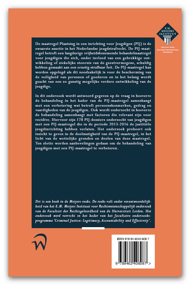 De maatregel Plaatsing in een inrichting voor Jeugdigen (PIJ) is de zwaarste sanctie in het Nederlandse jeugdstrafrecht. De PIJ-maat-regel betreft een langdurige vrijheidsbenemende behandelmaatregel voor jeugdigen die zich, onder invloed van een gebrekkige ont-wikkeling of ziekelijke stoornis van de geestvermogens, schuldig hebben gemaakt aan een ernstig strafbaar feit. De PIJ-maatregel kan worden opgelegd als dit noodzakelijk is voor de bescherming van de veiligheid van personen of goederen en in het belang wordt geacht van een zo gunstig mogelijke verdere ontwikkeling van de jeugdige.