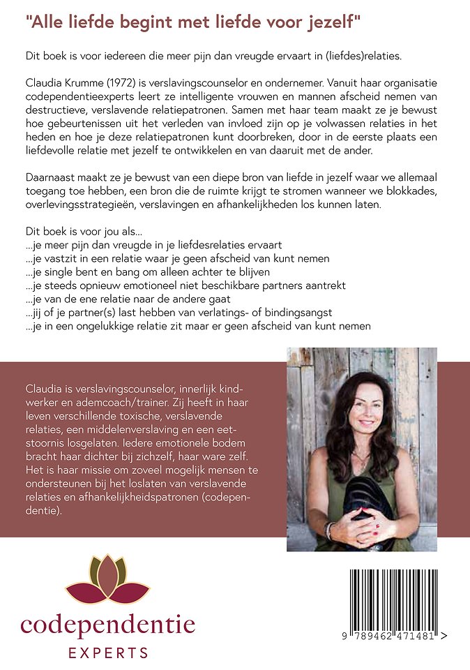 Claudia Krumme (1972) is verslavingscounselor. Vanuit haar praktijk Counselling Center Changes leert ze intelligente vrouwen en mannen afscheid nemen van destructieve, verslavende relatiepatronen.