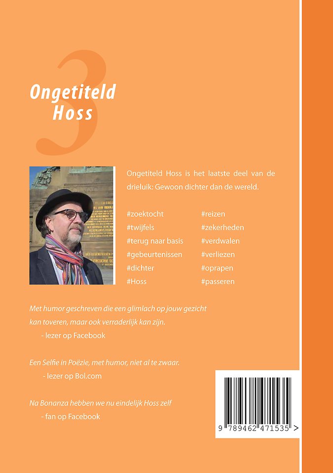 Ongetiteld Hoss is het laatste deel van de drieluik Gewoon dichter dan de wereld. Om verder te komen, moet je soms weer terug naar de basis, zeker als de basis dreigt uiteen te vallen, ga je weer terug naar waar je vandaan komt. Regelmatig verdwaal je dan weer en kijk je weer terug, om de weg terug te vinden. Niet omdat je zo graag de eindbestemming wilt kennen, maar wel op zoek bent naar een volgende bestemming. Over reizen, verdwalen, ouderschap, moederliefde, maar ook verlies en verwerking. Het leven gedicht.