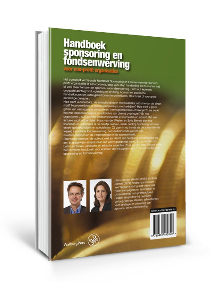 Het compleet vernieuwde Handboek Sponsoring en Fondsenwerving voor nonprofit organisaties is een concrete, stap-voor-stap handleiding om te starten met of veel meer te halen uit sponsor- en fondsenwerving. Het biedt iedereen, ongeacht achtergrond, opleiding en ervaring, houvast en praktische handreikingen om extra geldstromen te ontwikkelen, structureel of voor grote eenmalige projecten.