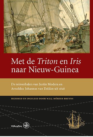 'Met de Triton en Iris naar Nieuw-Guinea' bevat de transcripties van twee journalen die tijdens de reis van 1828 zijn bijgehouden. Het eerste is van Justin Modera, die bij vertrek uit Nederland tweeëntwintig jaar was, en luitenant ter zee op de Triton. Het tweede is van de enkele maanden jongere bestuursambtenaar Arnoldus Johannes van Delden, die als gouvernementscommissaris was belast met de formele inbezitneming van Nieuw-Guinea. Modera’s verhaal verscheen in 1830 in druk, maar is nu zeldzaam.