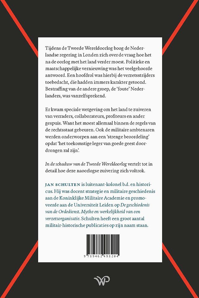 Er kwam speciale wetgeving om het land te zuiveren van verraders, collaborateurs, profiteurs en ander gespuis. Want het moest allemaal binnen de regels van de rechtsstaat gebeuren. Ook de militaire ambtenaren werden onderworpen aan een ‘strenge beoordeling’ opdat ‘het toekomstige leger van goede geest doordrongen zal zijn’.'In de schaduw van de Tweede Wereldoorlog' vertelt in detail hoe deze naoorlogse zuivering zich voltrok.