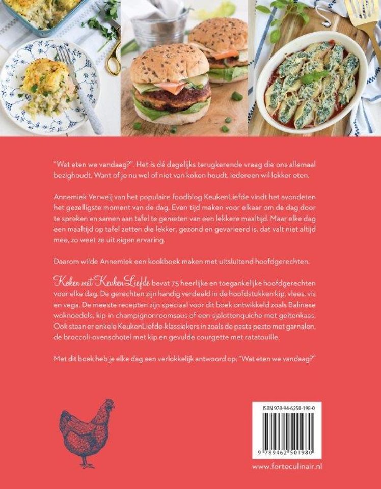 Annemiek Verweij van het populaire foodblog KeukenLiefde vindt het avondeten het gezelligste moment van de dag: samen aan tafel de dag doornemen onder het genot van een lekkere maaltijd. Maar elke dag een maaltijd op tafel zetten die lekker, gezond en gevarieerd is, dat valt niet altijd mee, zo weet ze uit eigen ervaring. Daarom wilde Annemiek een kookboek maken met uitsluitend hoofdgerechten.