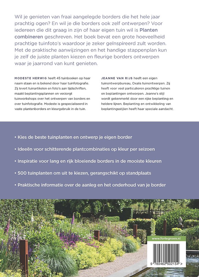 Planten combineren is een handboek dat bestaat uit een inleidend deel waarin je uitgebreide informatie krijgt over het ontwerpen van een beplanting. Deel twee laat diverse combinaties op kleur zien. In het derde deel worden zo’n 500 planten afgebeeld en beschreven, gerangschikt op standplaats en kleur. Het laatste deel is heel praktisch en beschrijft aanleg en onderhoud van borders.