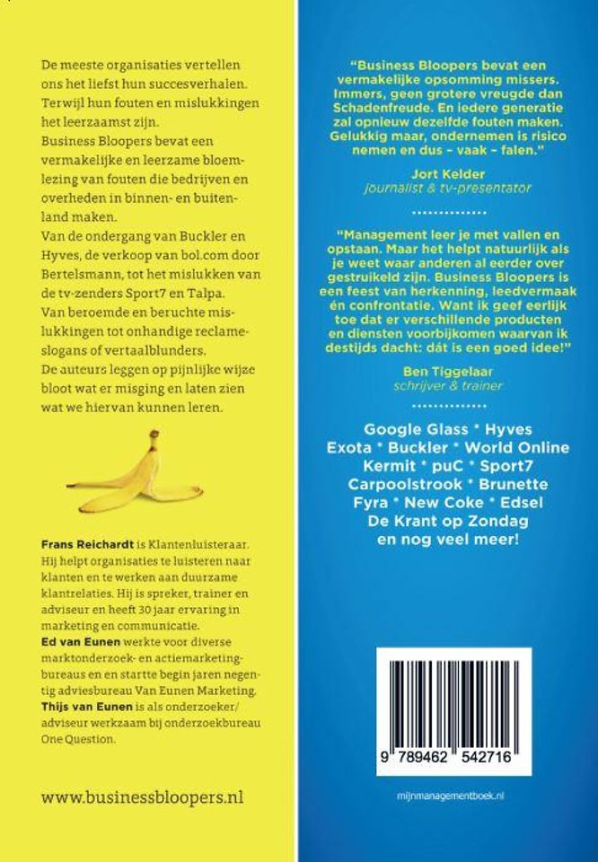 Meer over de auteurs'Business Bloopers' is een heruitgave van het boek 'Business Blunders' dat eerder is verschenen bij Pearson Education Benelux.