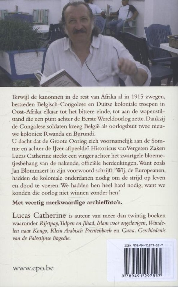 U dacht dat de Groote Oorlog zich voornamelijk aan de Somme en achter de IJzer afspeelde? Historicus van Vergeten Zaken Lucas Catherine steekt een vinger achter het zwartgele bloemetjesbehang van de nakende, officiële herdenkingen. Want zoals inleider Jan Blommaert schrijft: 'Wij, de Europeanen, hadden de koloniale onderdanen nodig om de strijd op leven en dood te voeren. We hadden hen heel hard nodig, want we konden die oorlog niet winnen zonder hen.'