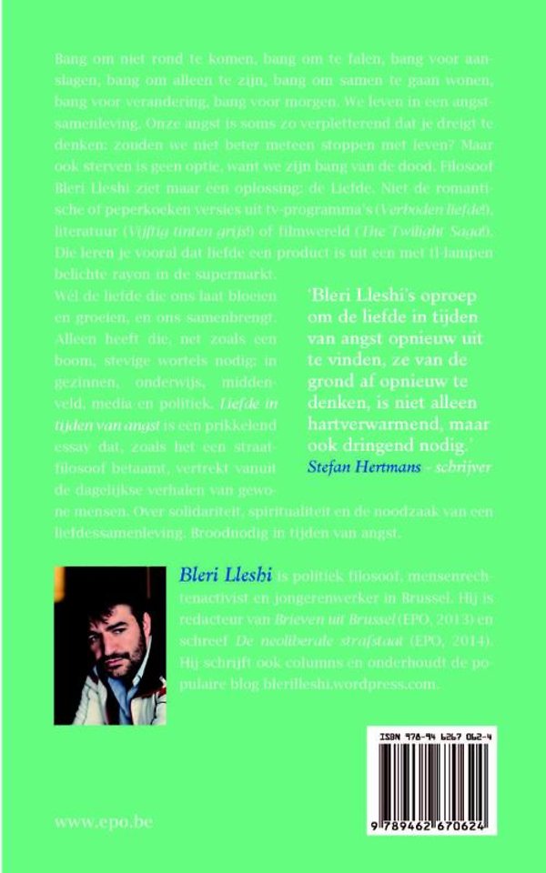 Wél de liefde die ons laat bloeien en groeien, en ons samenbrengt. Alleen heeft die, net zoals een boom, stevige wortels nodig: in gezinnen, onderwijs, middenveld, media en politiek. Liefde in tijden van angst is een prikkelend essay dat, zoals het een straatfilosoof betaamt, vertrekt vanuit de dagelijkse verhalen van gewone mensen. Over solidariteit, spiritualiteit en de noodzaak van een liefdessamenleving. Broodnodig in tijden van angs