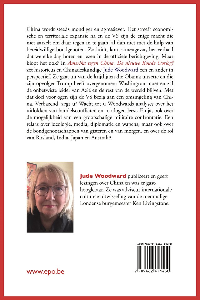 China wordt steeds mondiger en agressiever. Het streeft economische en territoriale expansie na en de VS zijn de enige macht die niet aarzelt om daar tegen in te gaan, al dan niet met de hulp van bereidwillige bondgenoten. Zo luidt, kort samengevat, het verhaal dat we elke dag horen en lezen in de officiële berichtgeving. Maar klopt het ook? In Amerika tegen China. De nieuwe Koude Oorlog? zet historicus en China-deskundige Jude Woodward een en ander in perspectief. Ze gaat uit van de krijtlijnen die Obama uitzette en die zijn opvolger Trump heeft overgenomen: Washington moet en zal de onbetwiste leider van Azië en de rest van de wereld blijven. Met dat doel voor ogen zijn de VS bezig aan een omsingeling van China. Verbazend, zegt u? Wacht tot u Woodwards analyses over het uitlokken van handelsconflicten en -oorlogen leest. En ja, ook over de mogelijkheid van een grootschalige militaire confrontatie.