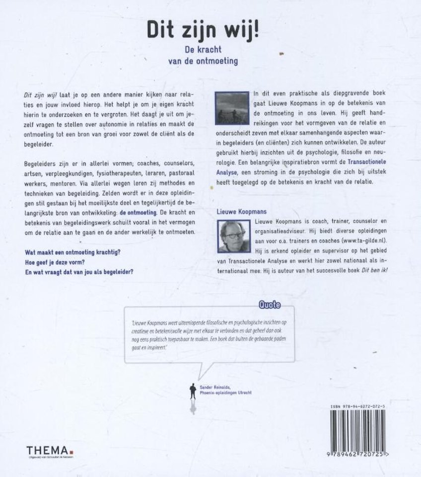 Lieuwe haalt lessen uit begeleidingssituaties en kijkt naar wat succesvolle ingrediënten van een goede ontmoeting zijn. Hij stoft oude waarden af en verbindt deze met nieuwe wetenschappelijke inzichten. Deze inzichten leren ons dat individualiteit een illusie is en dat slechts relaties de werkelijkheid van ons bestaan vormen. Hij geeft praktische wenken voor hoe je je ontmoetingen in het dagelijks leven kunt verdiepen. Dit zijn wij! is bestemd voor alle mensen die anderen willen ontmoeten. Daarnaast is het gericht op coaches en therapeuten en hun cliënten die zoeken naar een verdieping van hun contact.